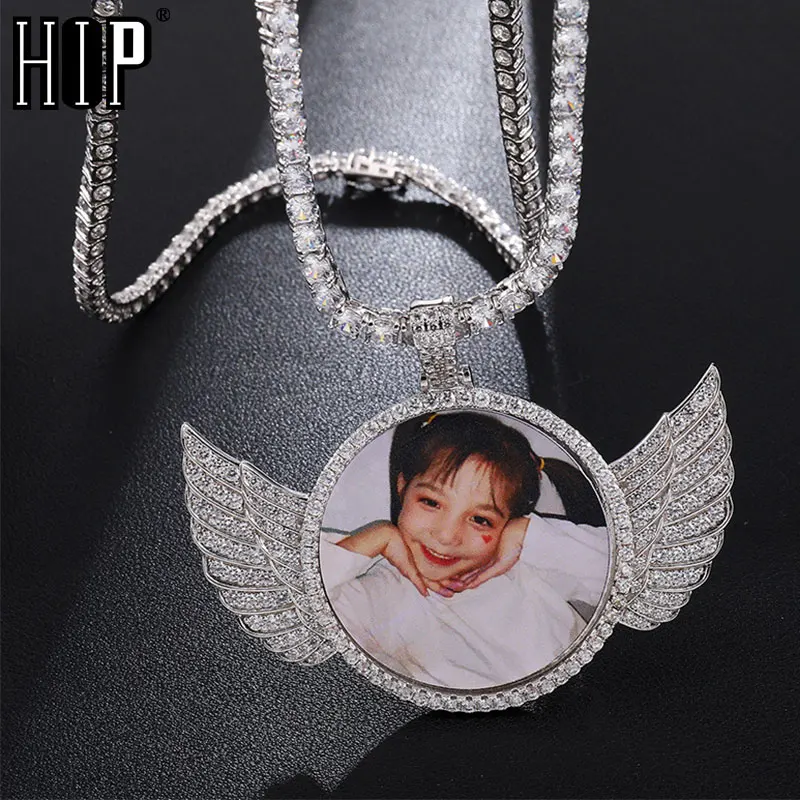 Хип-хоп изготовление на заказ фото крылья Iced Out Bling циркониевое ожерелье кубической формы и кулон для мужчин ювелирные изделия с теннисная ц...