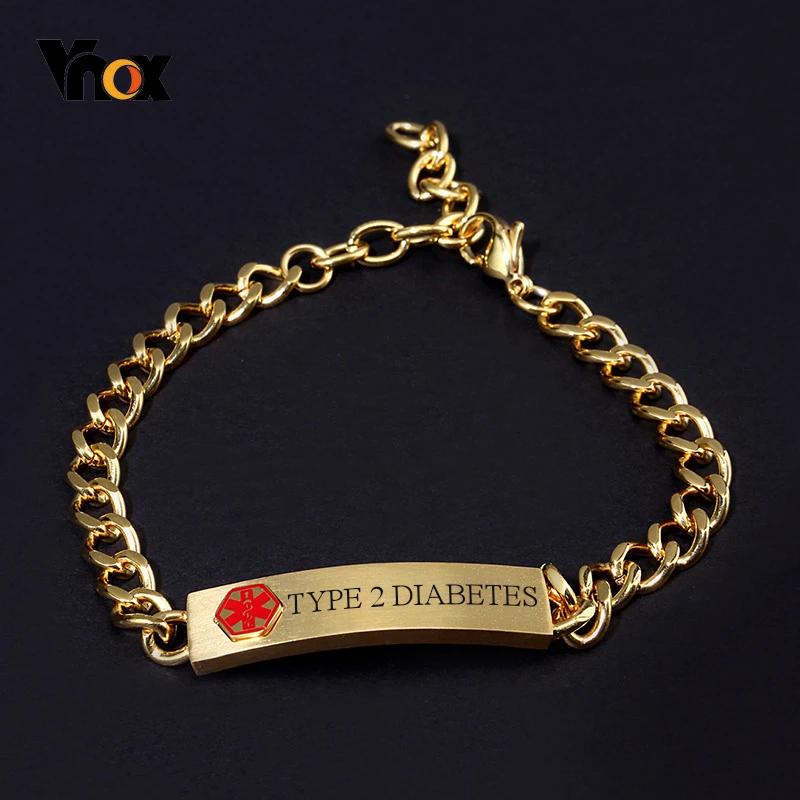 Vnox мужской золотой тон медицинский оповещение ID цепи браслеты для женщин ювелирные изделия с бесплатной персонализированной гравировкой