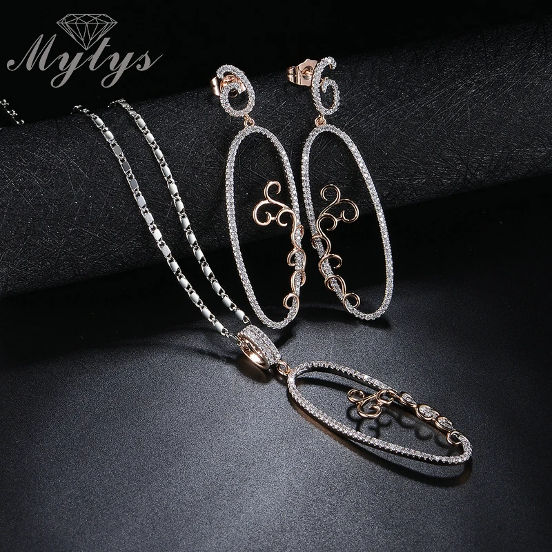 Mytys Новое поступление Модные украшения комплекты Кристалл Установка Овальный Кулон Цепочки и ожерелья и серьги падения наборы высокого уро...