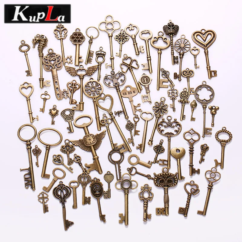 Винтаж латунный Металл смешанный каждый другой ключ талисманы DIY ювелирные изделия ручной работы украшения ключ кулон талисманы 70 шт./лот