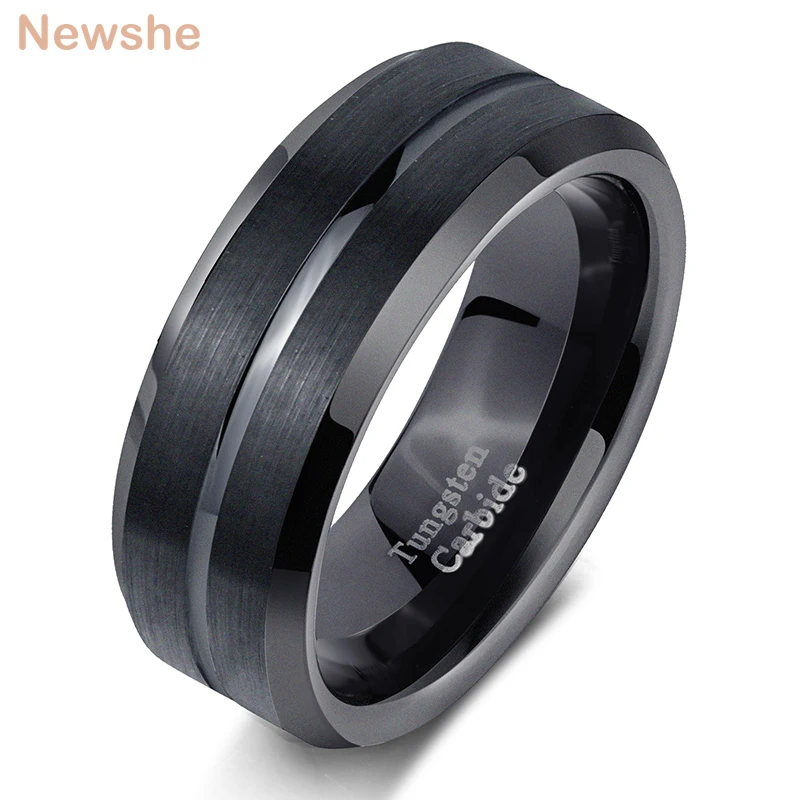 Newshe мужское кольцо из карбида вольфрама с черным шармом 8 мм обручальное кольцо для мужчин модные ювелирные изделия Размер 9-13 TRX048