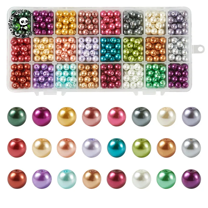 Pandahall 1 коробка 6 мм/8 мм СТЕКЛЯННЫЕ нити с жемчужными бусинами перламутровые круглые для ювелирных изделий Изготовление браслета ожерелья с...