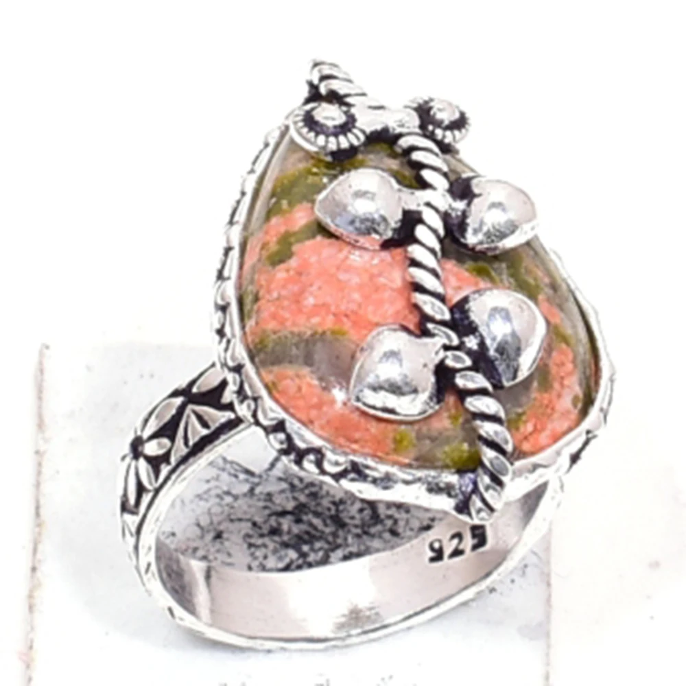 Rhodonite кольцо серебряное покрытие над медью, США Размер: 6,75, R5964