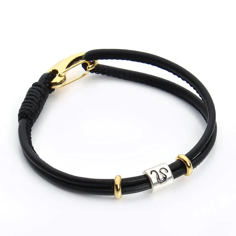 2017, Новая мода 12 созвездий черный Кожаные браслеты для Для женщин зодиака гороскоп Шарм Браслеты Для мужчин подарки на день рождения F3093