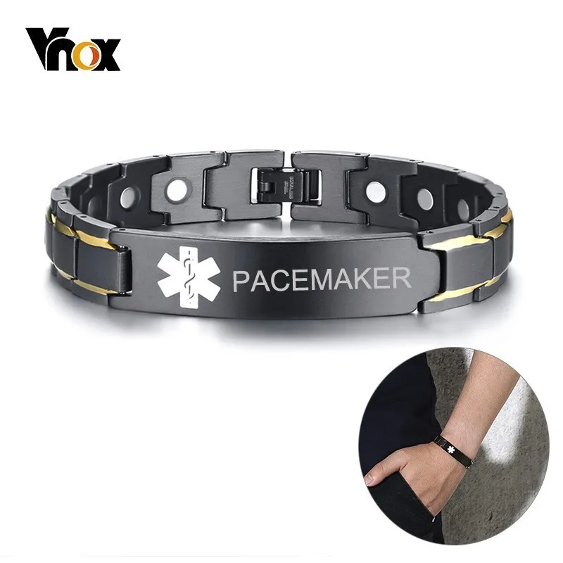 Vnox кардиостимулятор мужские идентификатор медицинской опасности Браслеты Черный Нержавеющая сталь боли энергии аварийного напоминание п...