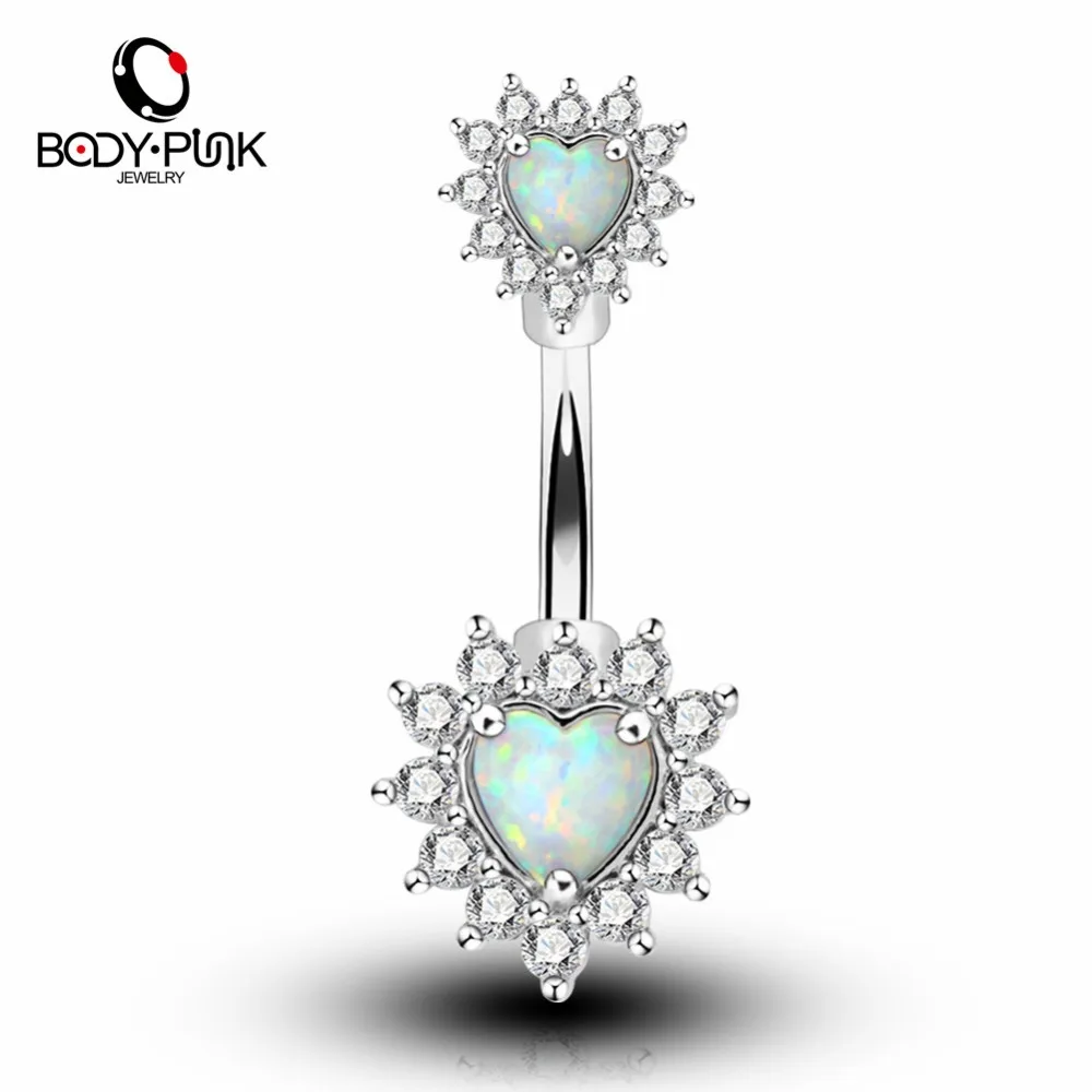 Телесный панк прозрачный CZ белый синий синтетический опал сердце форма пупка кольца 14G хирургическая сталь пупка кнопки кольца