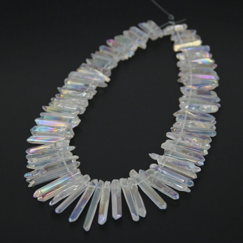 Полированный Мистик Титан AB белый кристалл кварца ТОЧКА подвески, необработанный Кристалл пробурено Stick бусины с огранкой каплей, приблизи...