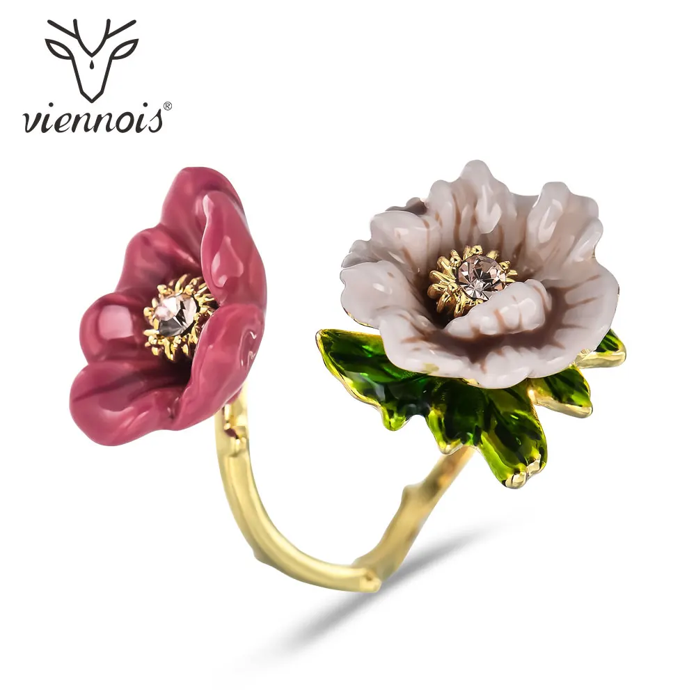 Новое кольцо Viennois золотого цвета с цветком для женщин, Спиральные кольца со стразами, праздничное кольцо
