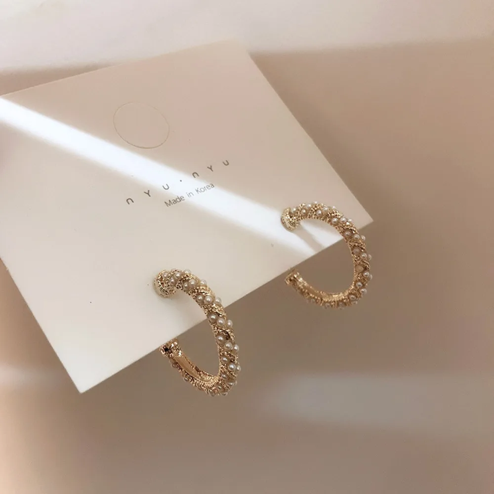 Новинка 2020, модные корейские милые большие металлические круглые серьги с пресноводным жемчугом, ювелирные изделия для женщин и девушек, вечерние серьги