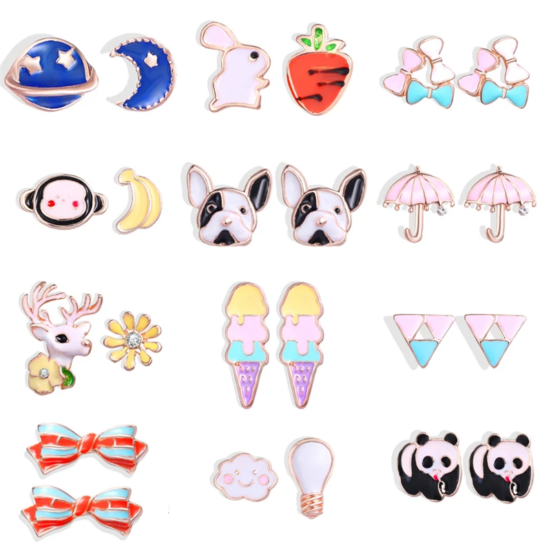 12 серьги-гвоздики с животными для девочек детские маленькие милые красочные детские серьги-гвоздики для девочек бульдог Лось Детские пирси...