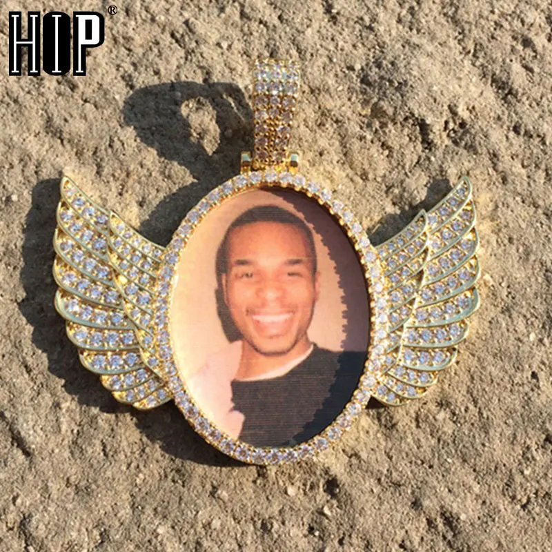 Хип хоп крылья Iced Out Bling на заказ фото циркониевое ожерелье кубической формы и кулон для мужчин ювелирные изделия с теннисная цепочка