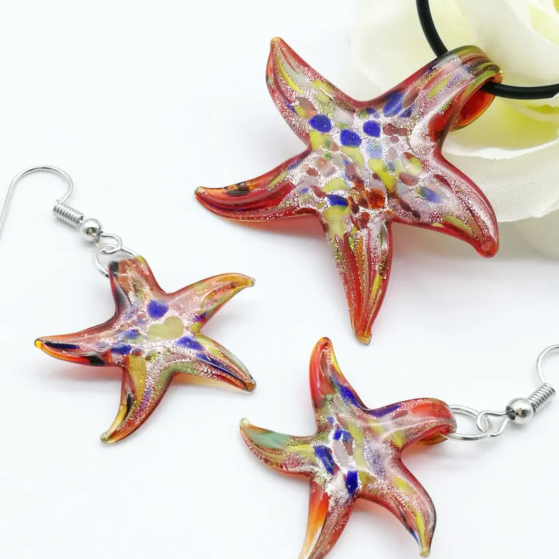 5 Наборы для ухода за кожей красный Starfish lampwork муранского Стекло кулон Серьги Chic