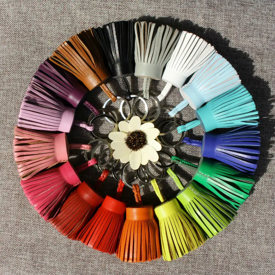 Роскошный кожаный брелок с кисточкой для ключей от известного бренда, брелок для ключей из натуральной кожи, женская сумка с подвеской для девушек