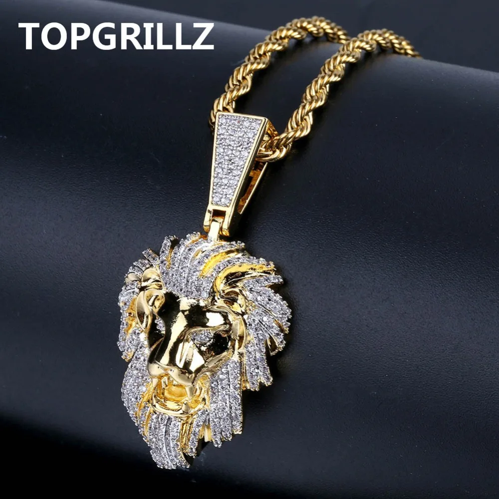TOPGRILLZ хип хоп золото цвет покрытием Iced Out Micro Pave кубический циркон подвеска с изображением Львиной головы цепочки и ожерелья Шарм для мужчин ...