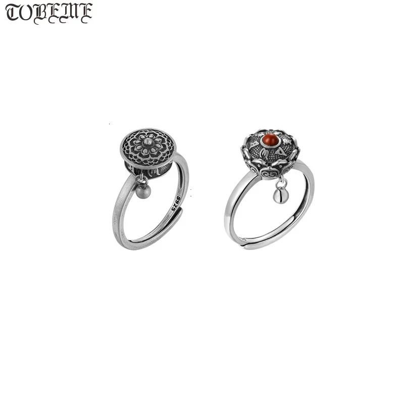 Ручной работы 100% 925 Серебряная тибетская молитва обод для колеса буддистское OM кольцо с мантрой удача женское кольцо