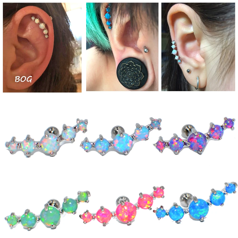 6 шт. 316L хирургическая сталь трагус пирсинг спираль кольцо с крапановой закрепкой камня 5 синтетический опал хрящевой пирсинг серьги гвозди...
