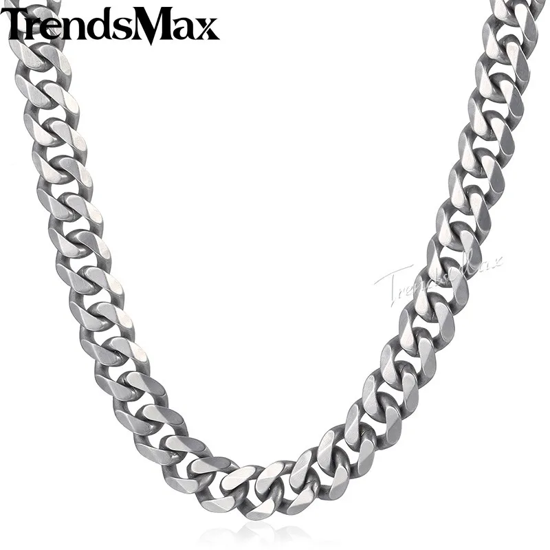 Trendsmax матовый полированный цепочки и ожерелья мужские цепи 316L нержавеющая сталь Cut Снаряженная Кубинский Ссылка Серебряный тон мм 14,5 мм KHNM18