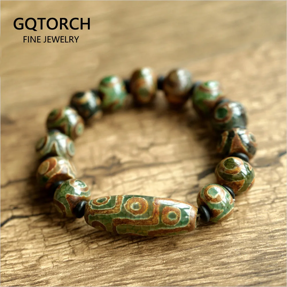 Настоящий природный оникс бисера Браслеты с Бусины дзи сглаза для Для женщин Для мужчин Натуральный камень под старину Ретро Тибетский юве...