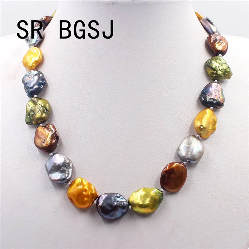 Бесплатная доставка 14-16 мм Reborn барокко многоцветный пресноводный жемчуг узел луна застежка ожерелье 18 дюймов