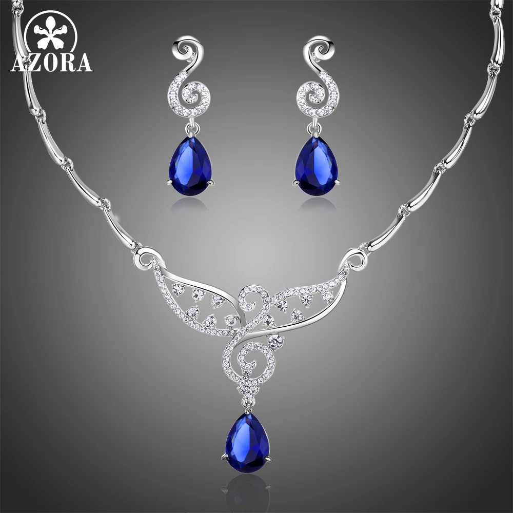 Женский ювелирный набор AZORA, сережки с синим цирконием, сережки, сережки с кристаллами, серебряного цвета, TG0252