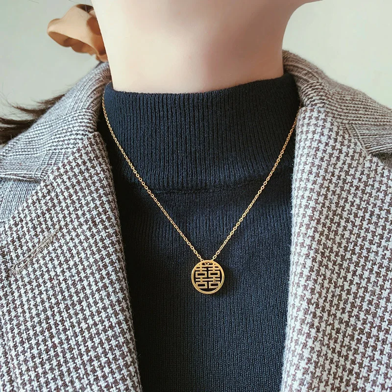 Нестареющее чудо, титановый Китайский Персонаж, двойное счастье, колье, ожерелье из нержавеющей стали, ювелирные изделия в стиле панк, готик...
