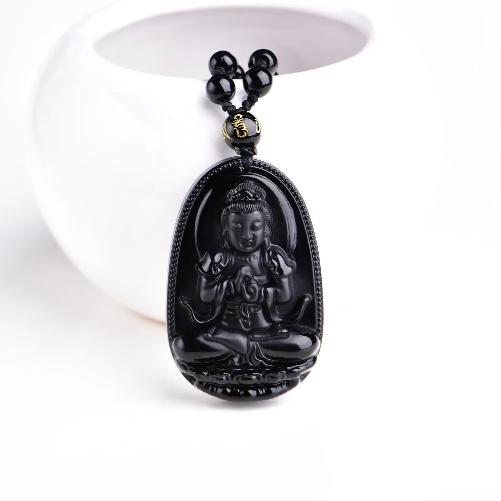 Высокое качество уникальный натуральный черный обсидиан Резные Будда Лаки амулет кулон цепочки и ожерелья для женщин мужчин Подвески ЮВЕ