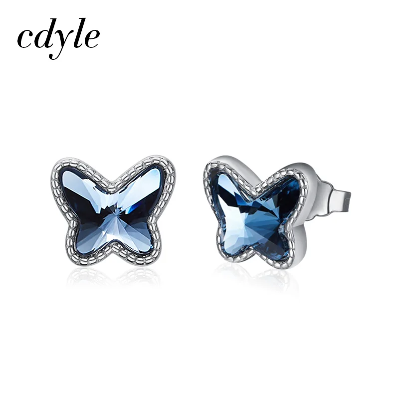 Cdyle 925 пробы Серебряный Синий кристаллами от Swarovski серьги в виде бабочек Роскошные Модные украшения День святого Валентина подарки на день р...