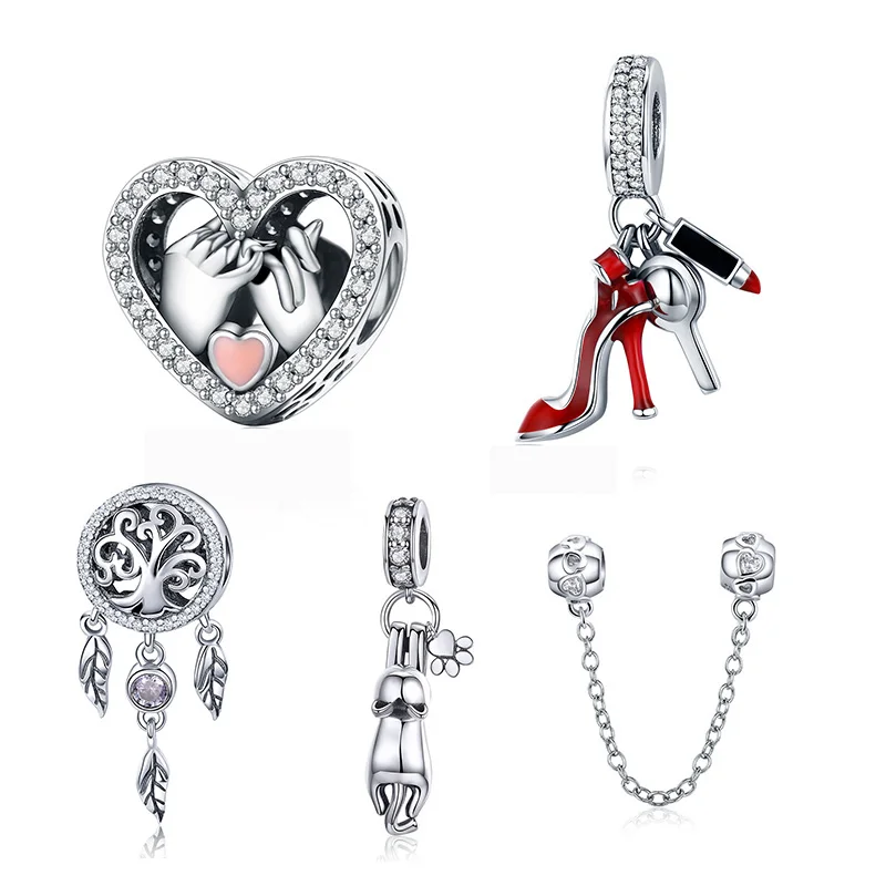WOSTU Семья Сердце Шарм высокий каблук Зеркало макияж Кулон Шарм Ловец снов бусины для изготовления ювелирных изделий медь циркон