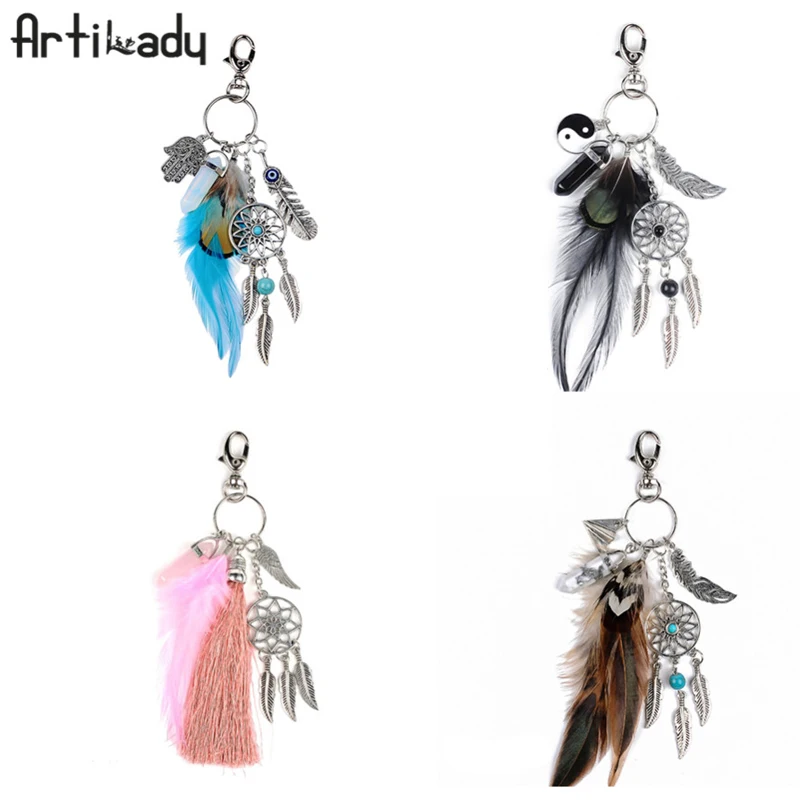 Брелок для ключей Artilady, натуральный корпус, Опаловый камень, брелок Хранитель снов, сумка, брелок для ювелирных изделий в стиле бохо, брелок для ключей с перьями для женщин