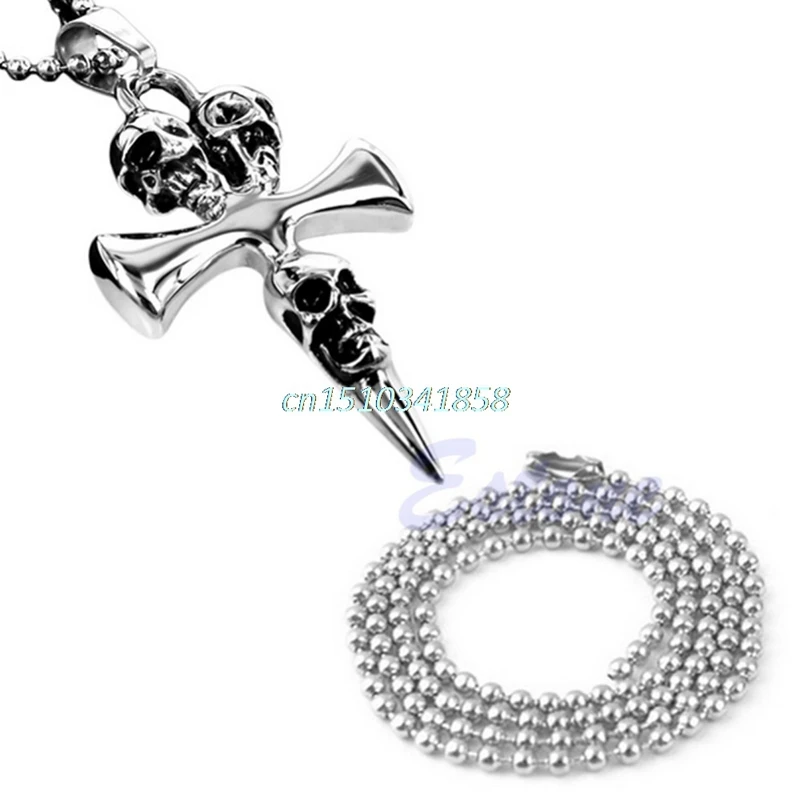 Новый подарок унисекс Для Мужчин's Нержавеющая сталь крест Череп Байкер Подвеска Цепочки и ожерелья цепь # Y51 #