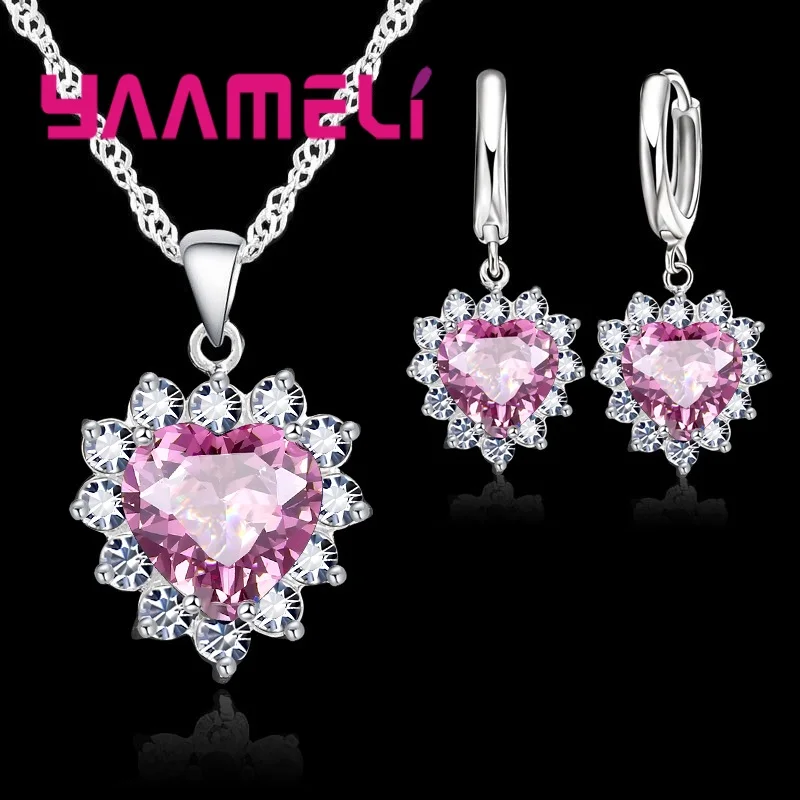 YAAMELI новый костюм в форме сердца модные женские туфли свадебные серебряные украшения комплект кристалл серьги цепочки и ожерелья кулон со с...