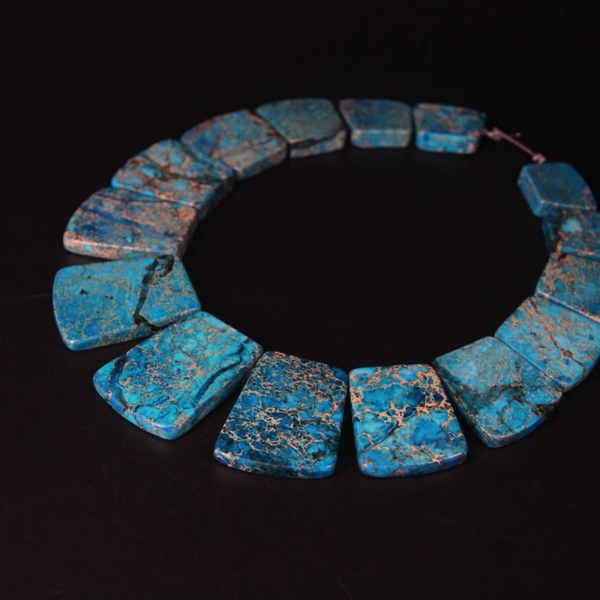 15 шт. Топ просверленные впечатление Jaspers трапециевидные плоские бусины, небесно-голубой морской осадочный император каменные ожерелья с по...