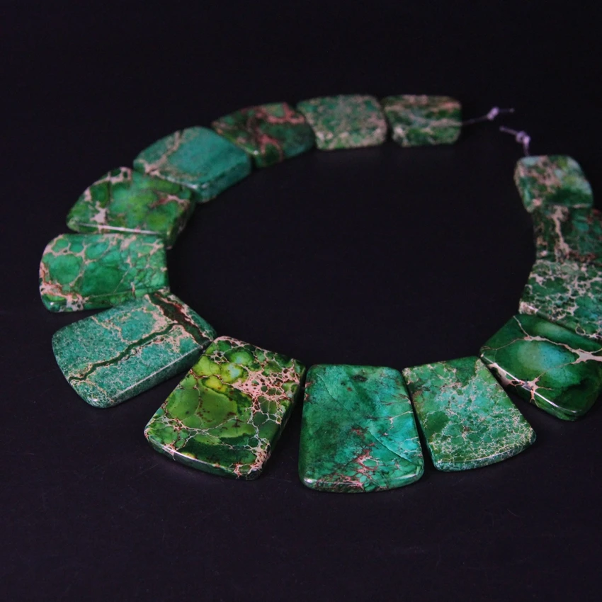 15 шт. зеленые Impression Jaspers Топ просверленные трапециевидные плоские бусины, морской осадочный император камни Градуированные модное ожерелье