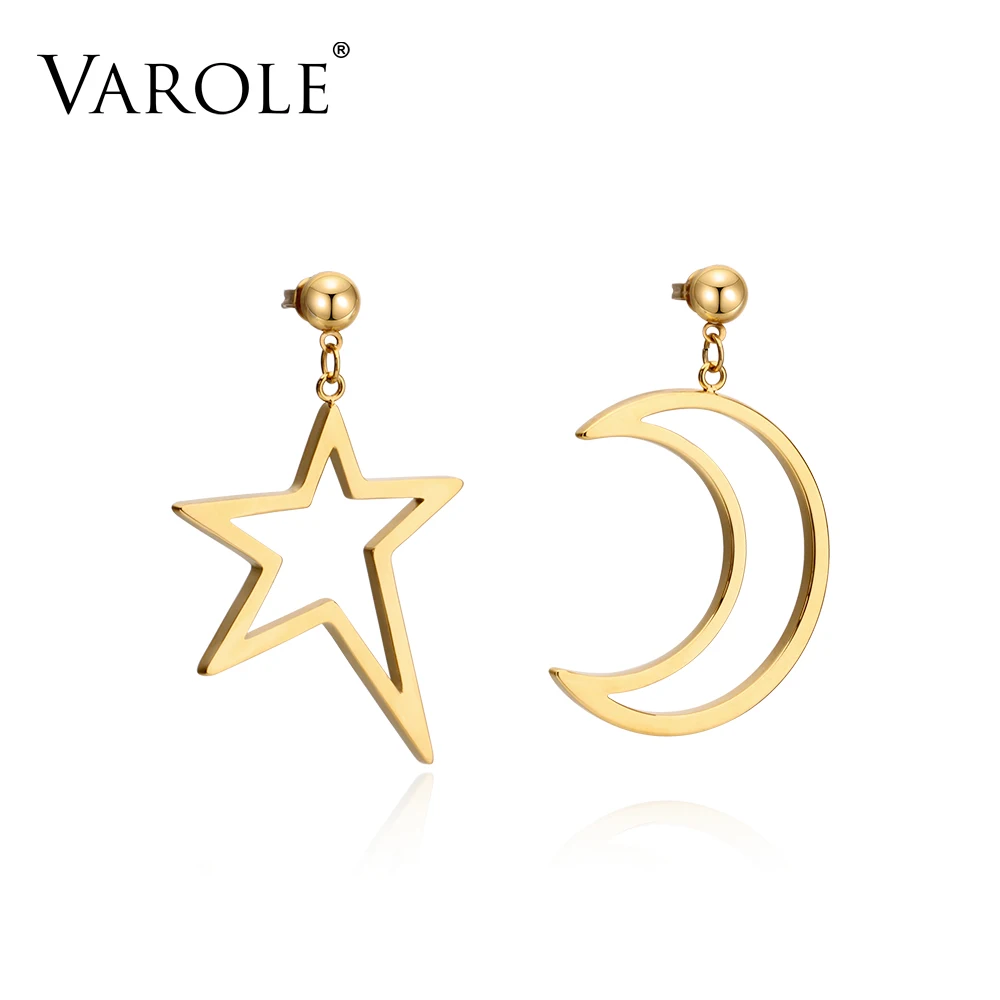VAROLE звезды и луна Нержавеющая сталь длинные серьги для Для женщин цвета: золотистый, серебристый Цвет ювелирные изделия серьги букле D'oreille ...