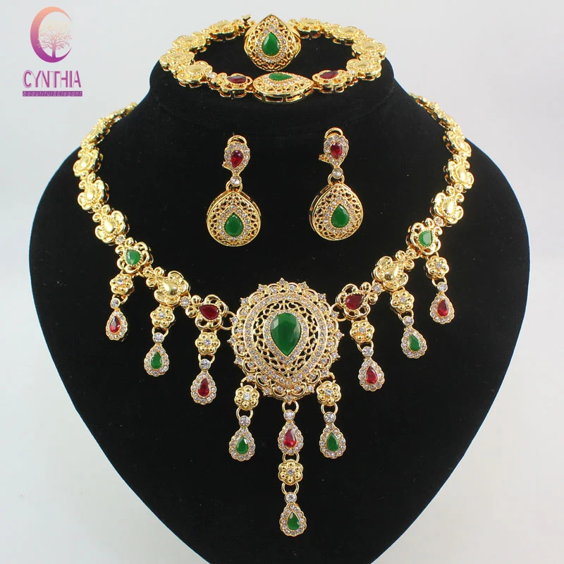 Модные африканские Бусины красный/зеленый драгоценный камень горный хрусталь костюм ювелирные украшения наборы Золото Цвет Кристалл для ж...