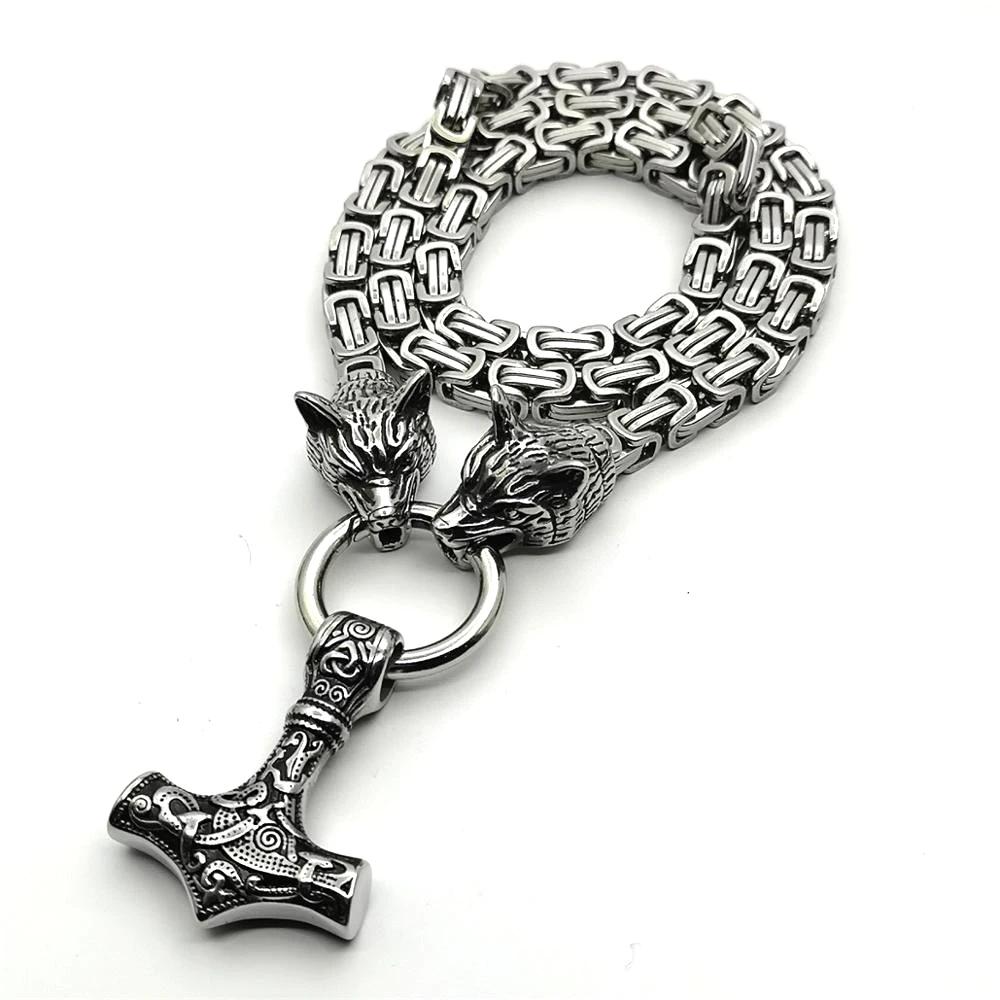 Мужское Кукольное ожерелье из нержавеющей стали с головой волка, скандинавский Викинг, подвеска Thor hammer, подвесная цепочка Viking king