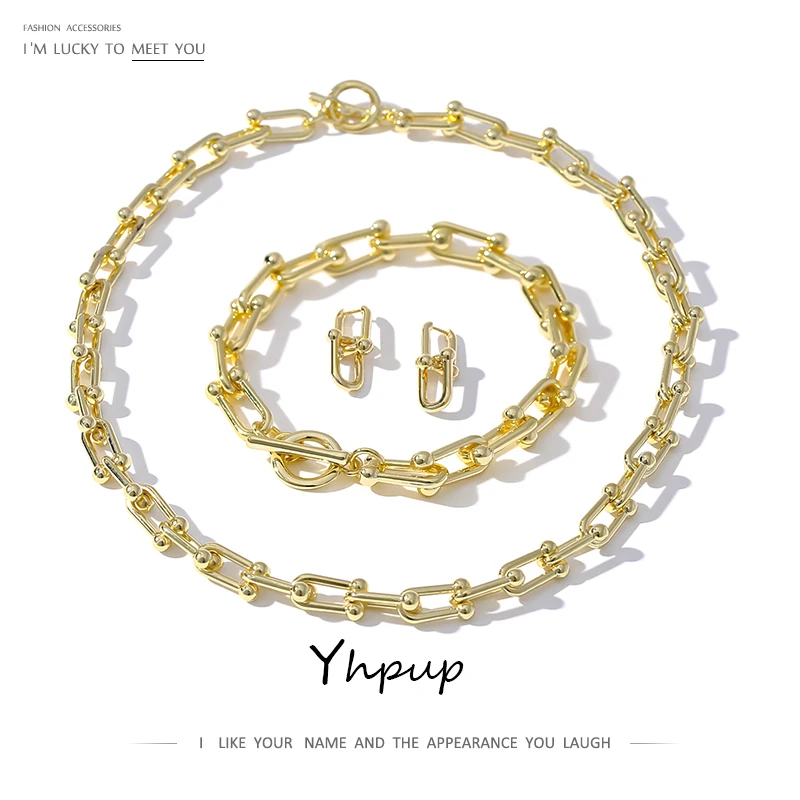Yhpup 2020 золотые серьги ожерелье браслет набор украшений для женщин Массивный воротник ожерелье цепочка браслет очаровательные серьги