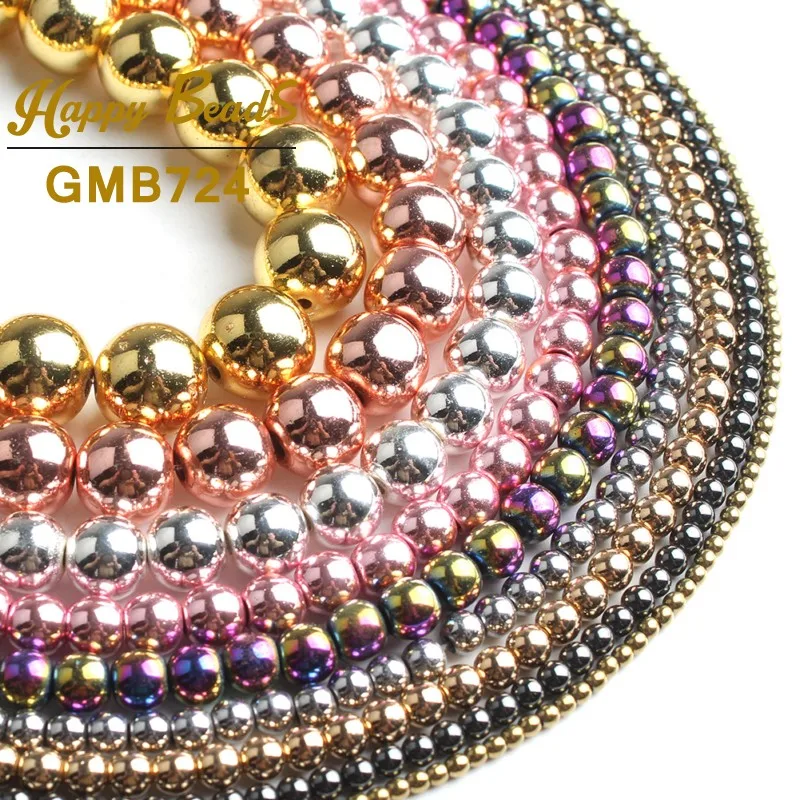 Натуральный гематит, розовое золото, серебро, черный, покрытый бусинами, высокое качество, круглые свободные бусины для изготовления ювелирных изделий, DIY Браслеты, 2-12 мм, 15 дюймов