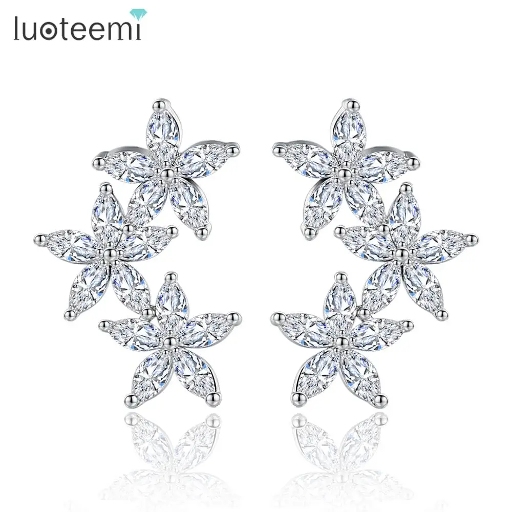 LUOTEEMI очаровательные цветы расцветают серьги-гвоздики для женщин Свадебные кубический циркон белого золота цвет модные ювелирные изделия п...