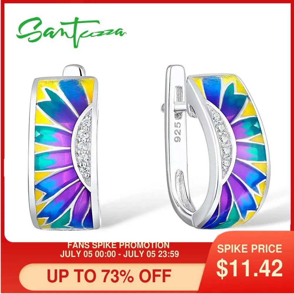 SANTUZZA серебряные серьги для женщин 925 пробы серебряные серьги-гвоздики с камнями Кубический Цирконий brincos Ювелирные Изделия Красочные эмаль