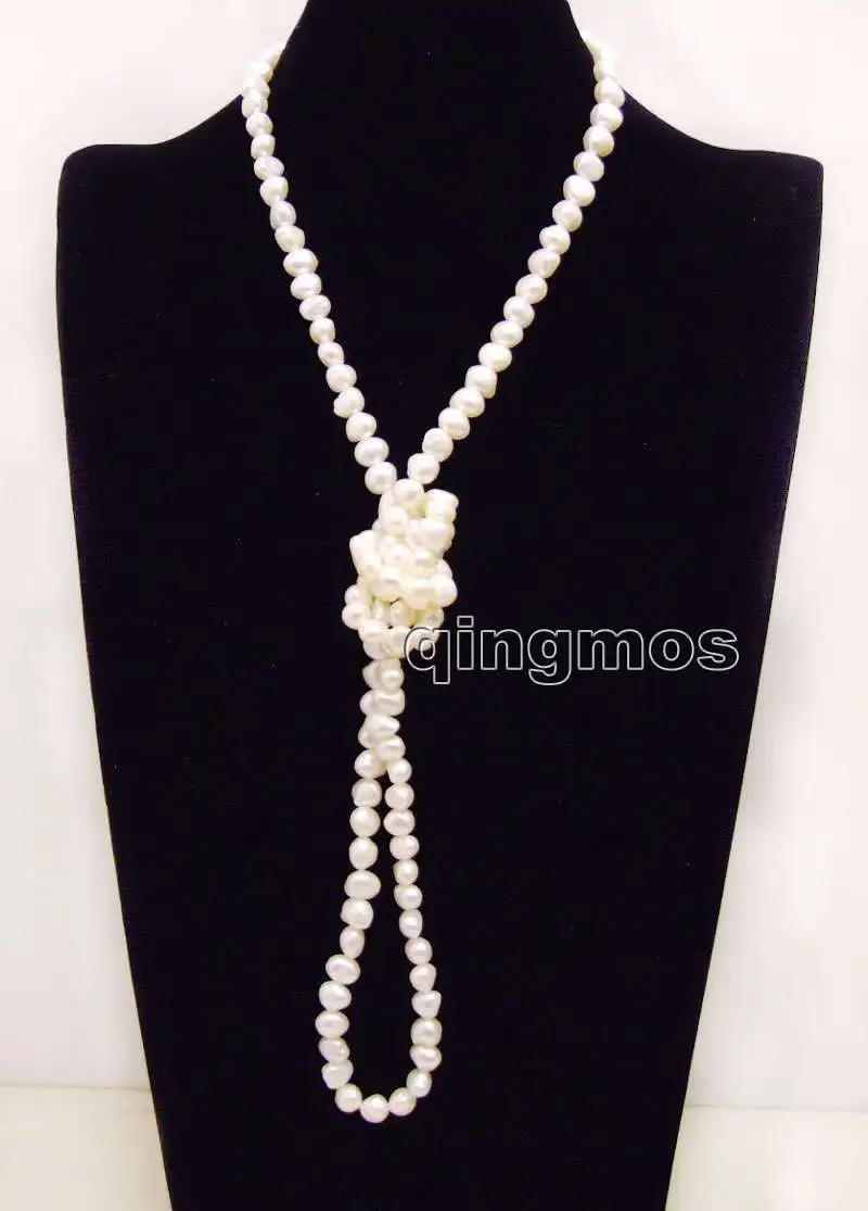 Модный длинный 40 "натуральный белый 8-9 мм барочный пресноводный жемчуг necklace-nec6155 оптом/в розницу Бесплатная доставка
