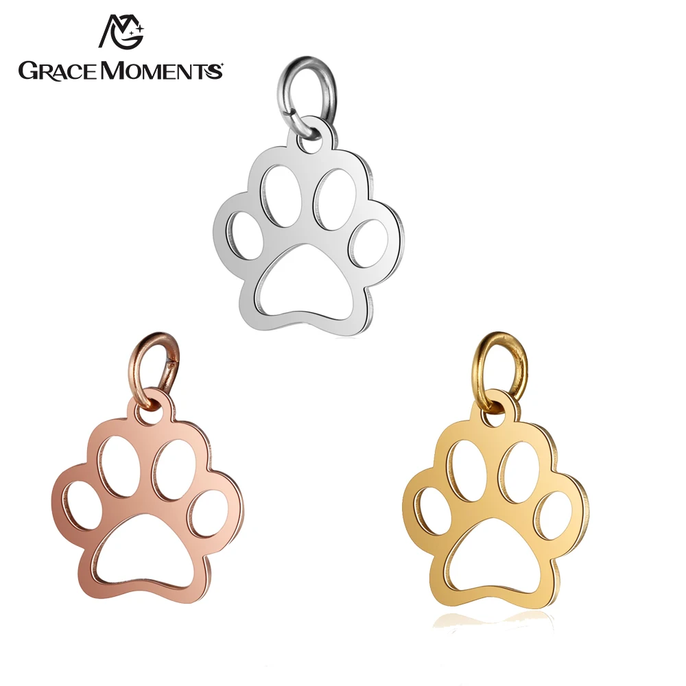 50 шт./лот 316L нержавеющая сталь талисманы милая собака животных Амулет лапа Подвески для изготовления ювелирных изделий браслет DIY аксессуар...