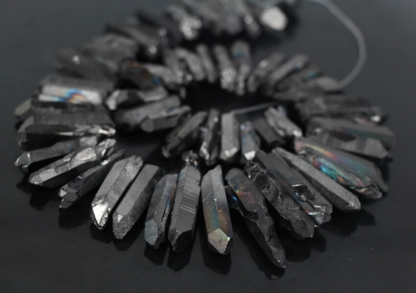 15.5 "str пистолет черный Титан сырья Кристалл stick Топ пробурено Точка Подвеска Бусины, грубая кристалл кварца столб Клыка Бусины ювелирные изд...