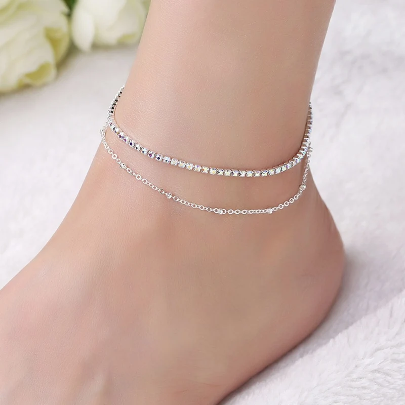 Летние модные ножные браслеты серебряный цвет двойной цепи кристалл украшение для лодыжки для Для женщин Цвет ful Пляж ног ножной браслет