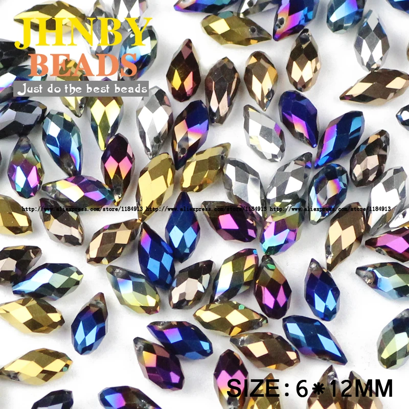 JHNBY Briolette подвеска капля Австрийские хрустальные бусины 6 * 12mm50pcs покрытие Teardrop стеклянная бусина для изготовления ювелирных изделий браслет...