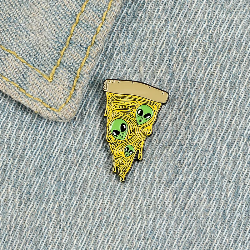 Корейский мультфильм инопланетянин пицца Броши для женщин панк еда эмаль булавки ювелирные изделия джинсовые куртки значок для рюкзака аксессуары безделушки