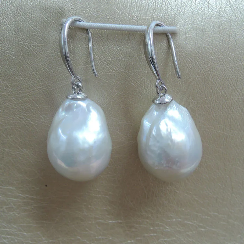 100% натуральный пресноводный жемчуг серьги с 925 серебряным крюком, AA барокко Жемчуг, диаметр 14-18 мм Большой барокко Жемчуг, с витриной