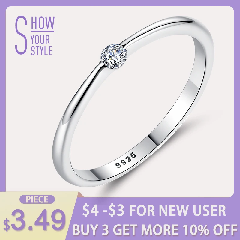 Подлинный eleshe кольца из стерлингового серебра 925 Круглый циркония Кристалл палец кольца для женщин Свадебные оригинальные серебряные ювел...
