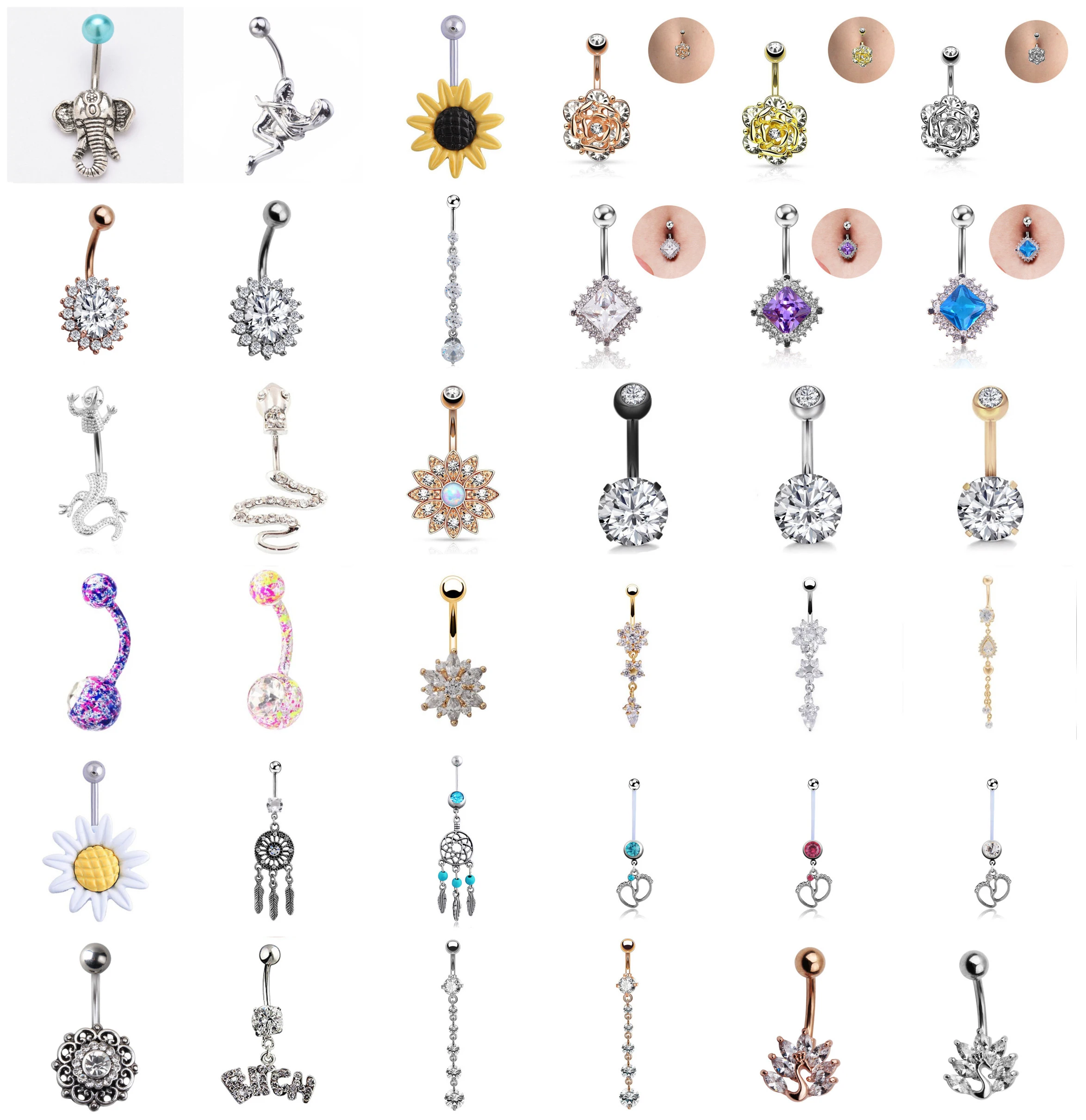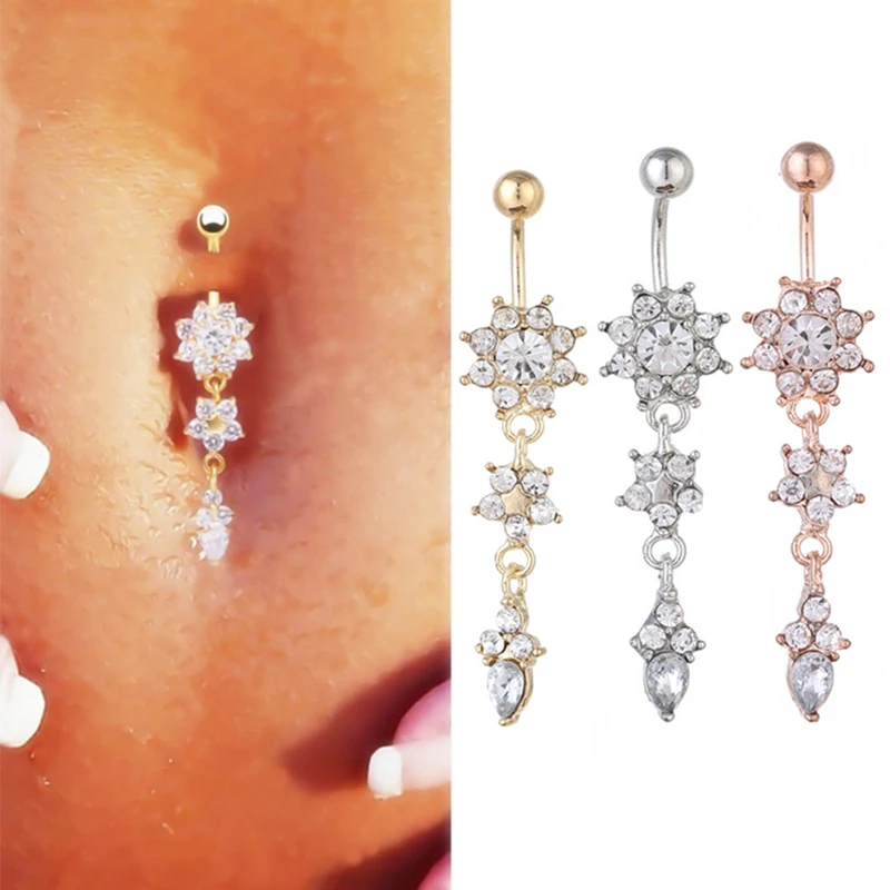 1 шт. Хрустальный цветок сексуальные болтающиеся пупка золотые, серебряные кольца Пирсинг живота CZ ювелирные изделия для тела Пирсинг пупка кольца