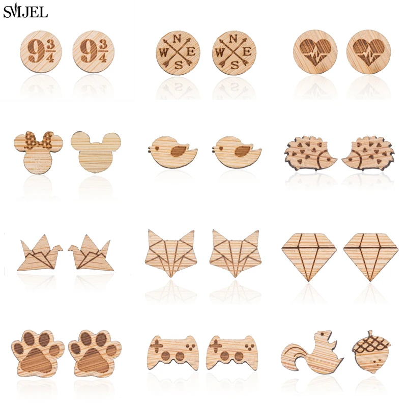 SMJEL серьги в богемном стиле, Деревянные маленькие серьги-гвоздики с Микки Маусом для женщин и детей, треугольные серьги аксессуары Brincos
